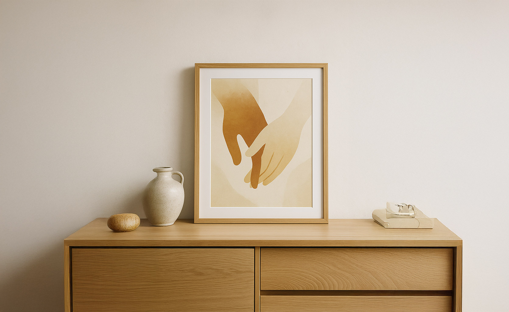 “Na de geboorte van onze dochter kregen we van vrienden een SoulFrame cadeau. Het voelde alsof iemand onze emoties had geschilderd: teder, warm en puur. Zo’n uniek geschenk.”