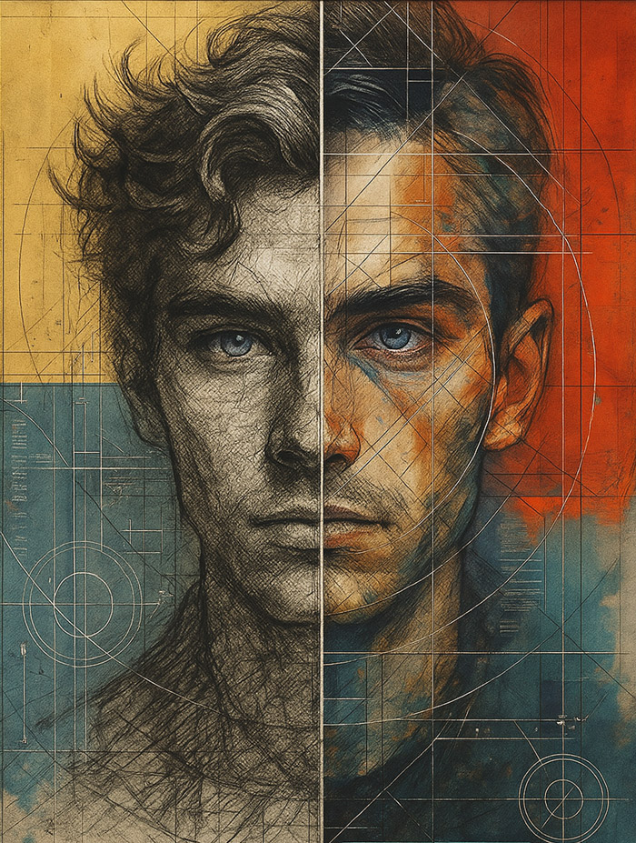 Omdat de meeste SoulFrames heel persoonlijk zijn, tonen we hier ook symbolische en illustratieve werken die de sfeer, stijl en emoties weerspiegelen van echte verhalen. Ze zijn bedoeld om te inspireren – als startpunt voor wat jouw SoulFrame kan worden.