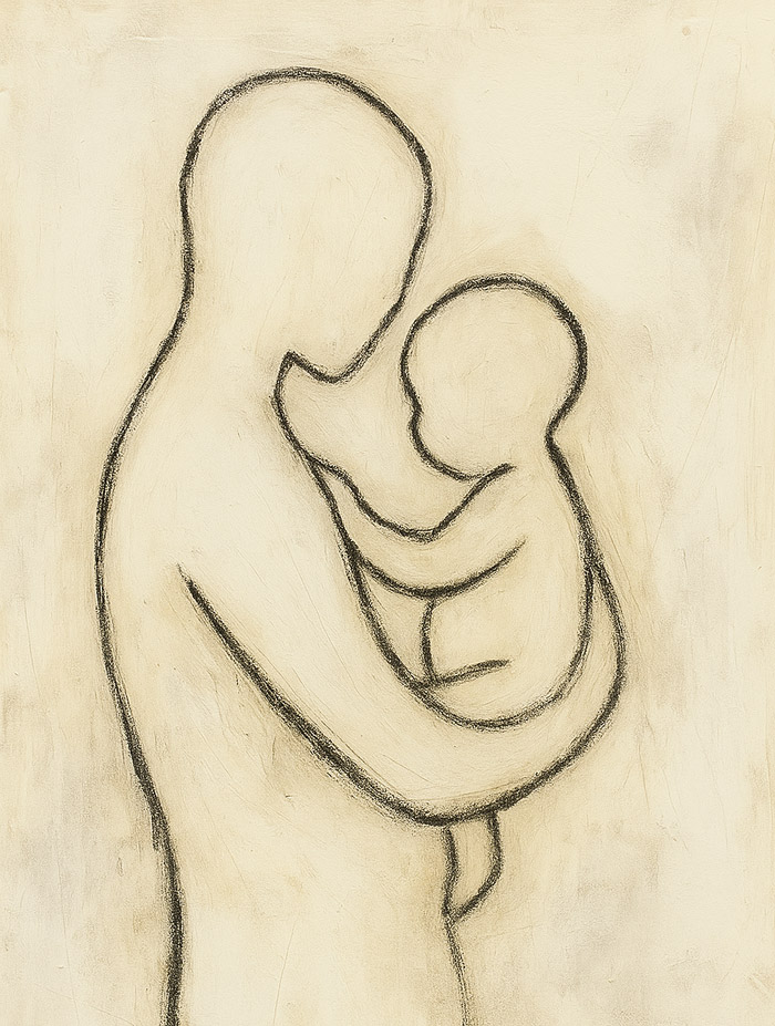 De eerste adem, een voetje, een klein handje. Een werk dat de wonderlijke kwetsbaarheid van nieuw leven viert — of herdenkt, als dat leven te kort was.
