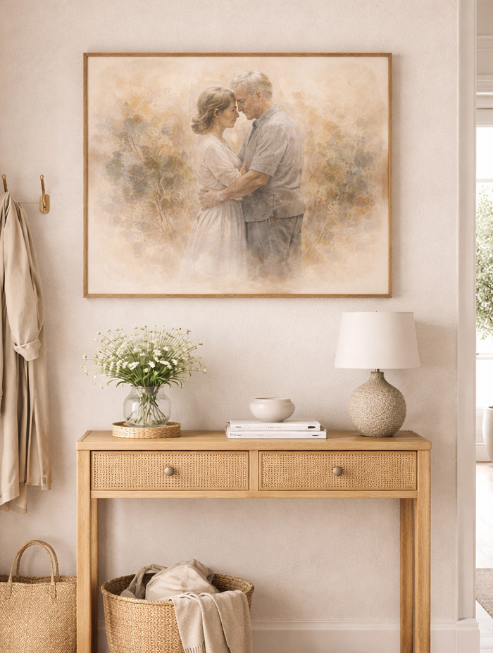 Omdat de meeste werken heel persoonlijk zijn, tonen we hier ook enkele illustratieve voorbeelden. Ze weerspiegelen de sfeer en stijl van echte SoulFrames, maar nooit de persoonlijke beelden van onze klanten. Want wat iemand met ons deelt, blijft tussen hen en hun verhaal.