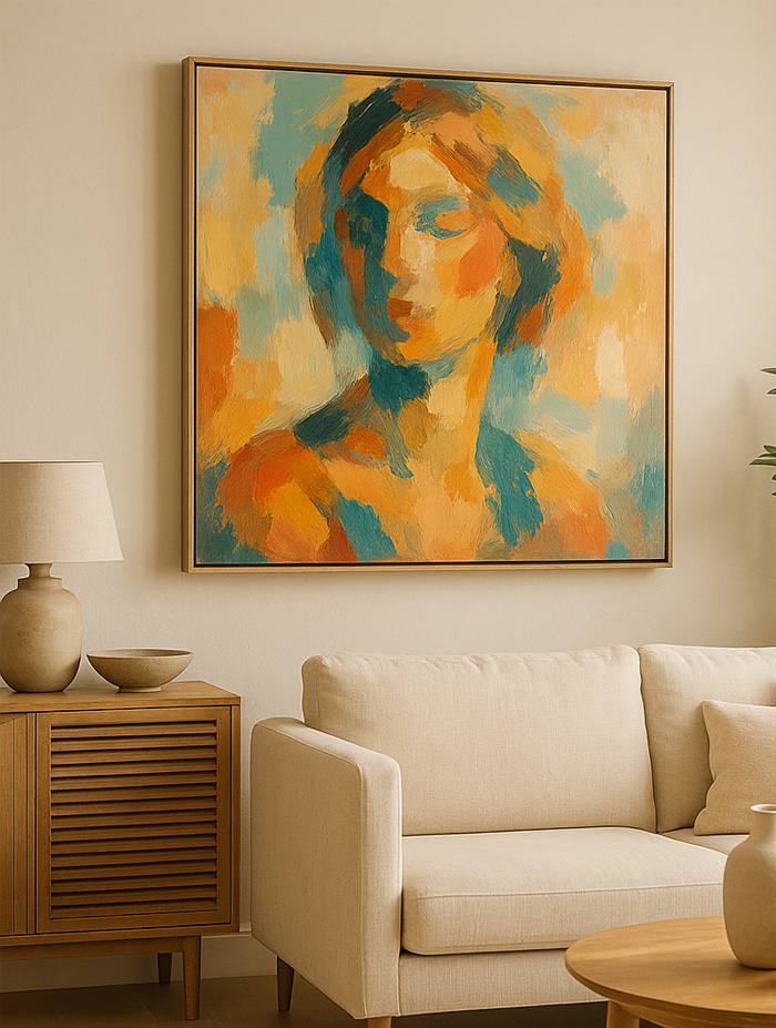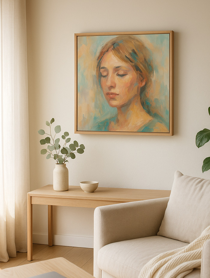 Geen twee SoulFrames zijn ooit hetzelfde. We vertrekken altijd vanuit jouw foto, jouw verhaal, jouw gevoel en laten dat de richting bepalen van kleuren, vormen en textuur. Soms zacht en ingetogen, soms vol licht en energie, maar altijd met respect voor wat het beeld vertelt.
